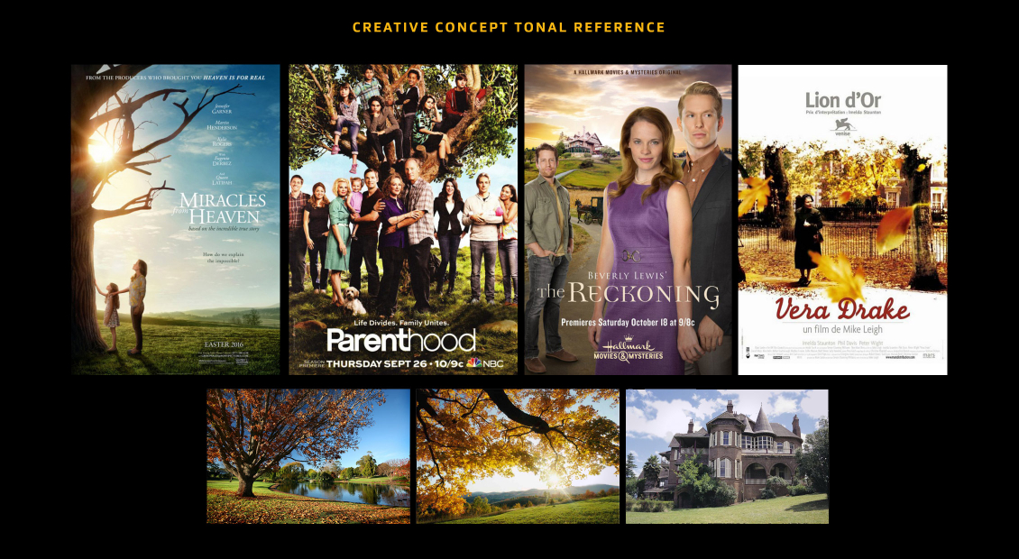 The use of wind and autumn leaves flying through the air would imbue the scene with a sense of change and uncertainty, whilst also giving a comforting and warm autumnal aesthetic. Dramatic atmospheric elements to build the sense of change – falling leaves, wind blowing hair of characters.