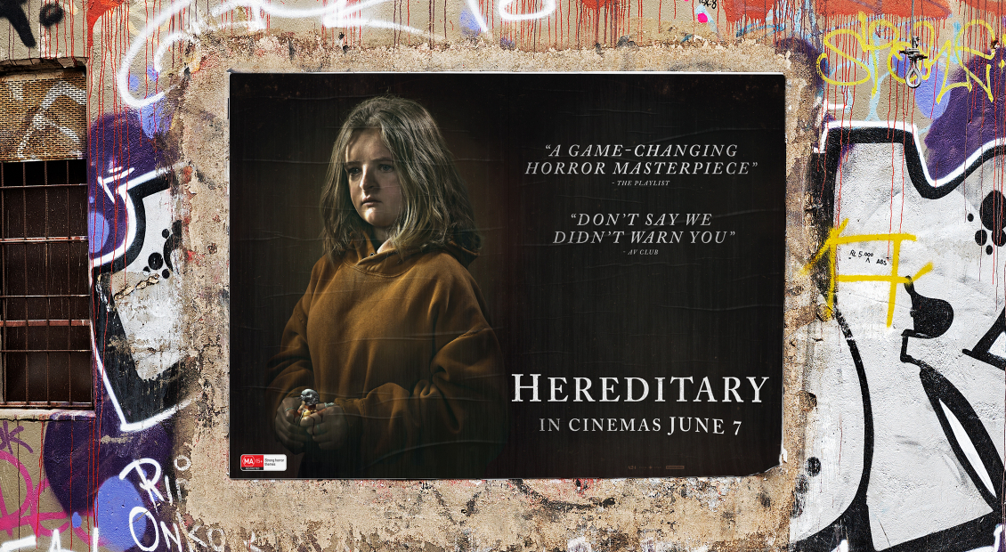 Horror films are always enjoyable to work on, but A24’s Hereditary was particularly so from a campaign creative perspective. Studio Canal developed a clever strategy targeting a discerning horror/arthouse audience which avoided mainstream channels in favour of grassroots platforms including partnerships with Supanova, multi-phased street postering, innovative and targetted outdoor and a brilliantly planned digital takeover of real estate portal domain.com.au.