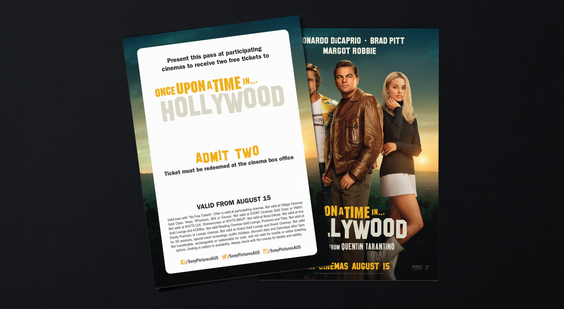 Working closely with Sony Pictures and their media agency OMD, Carnival worked on the Australian campaign of Quentin Tarrantino’s long-awaited Once Upon A Time In Hollywood – from localising international key art (Designed by WORKS ADV and BLT Communications), through to a broad print and digital outdoor campaign, and through to online advertising and promotional marketing.