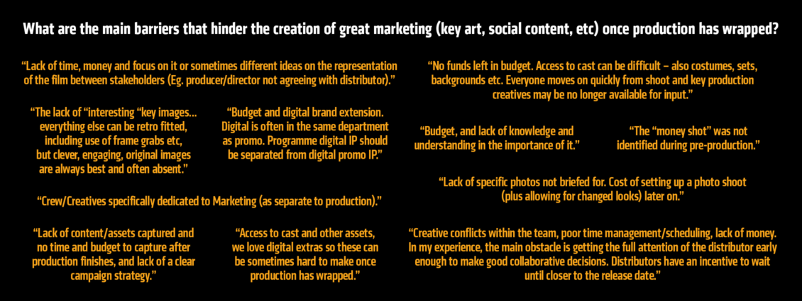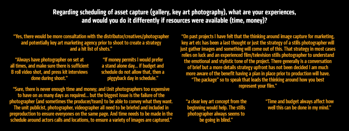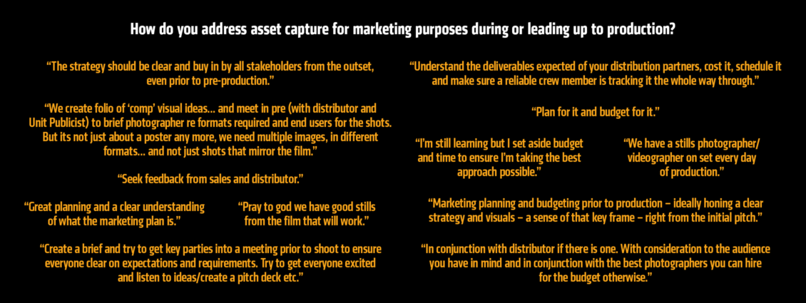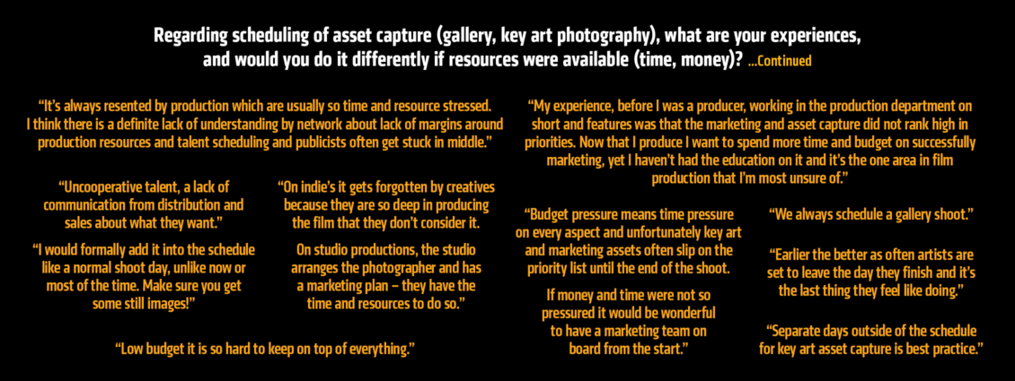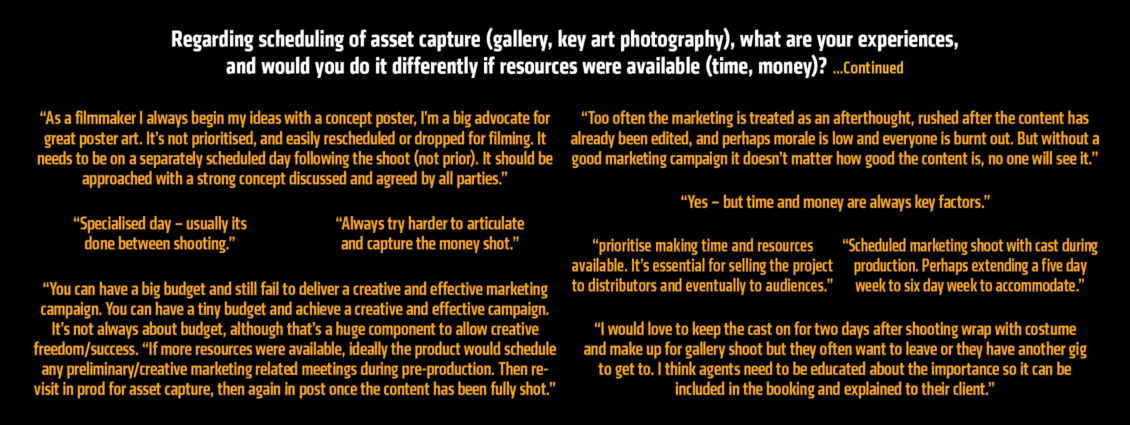 In 2021, Carnival Studio sought industry participation in an online Producer Survey to gain a greater understanding of attitudes, experiences and trends among Australian film and television producers concerning marketing. The impetus was to seek consensus on the challenges and solutions surrounding the asset capture during production.